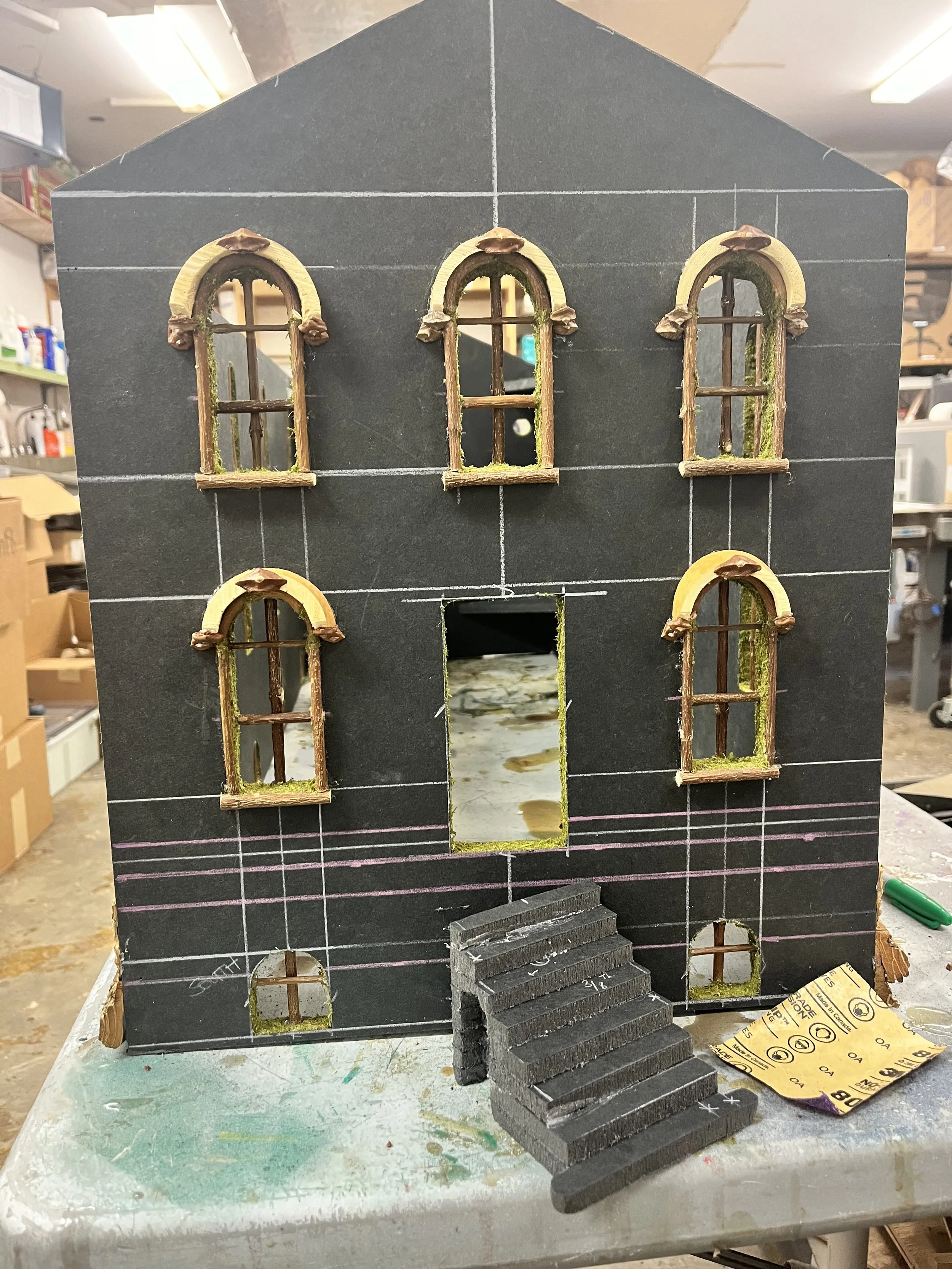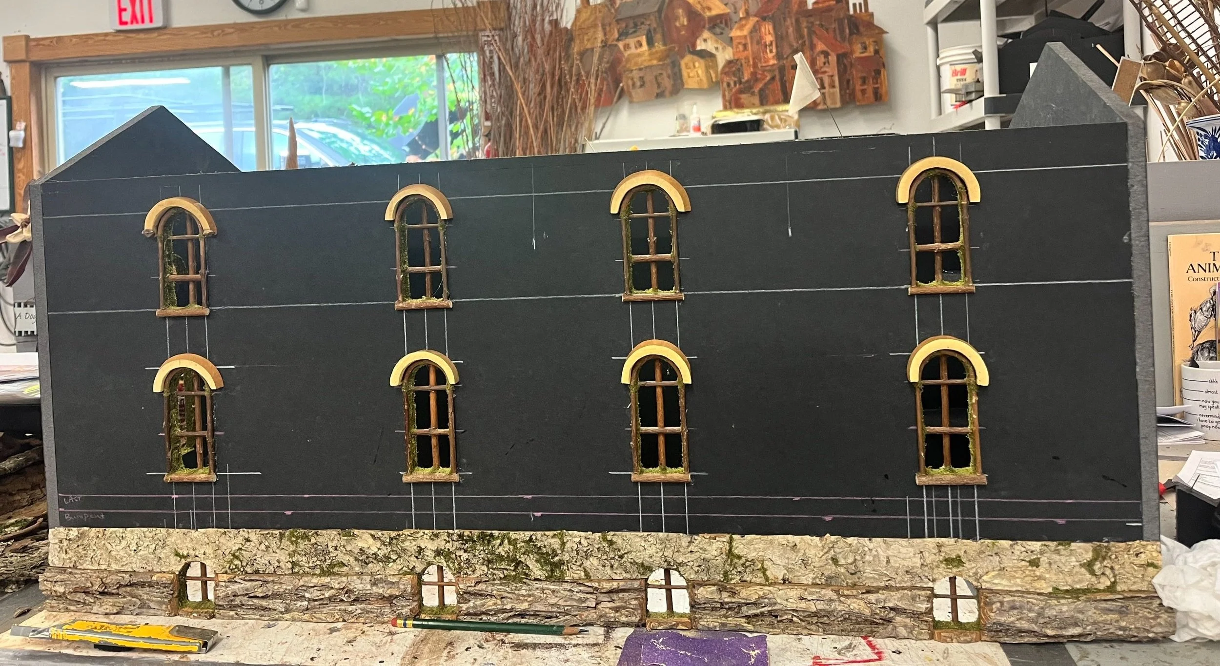 The building’s walls were blocked out and cut from large pieces of 3/4" gator foam.