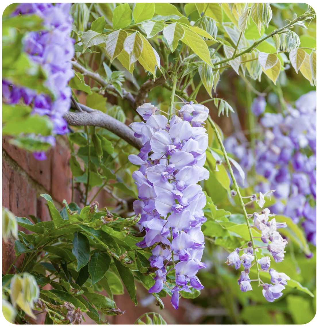 Placing the wisteria on the arch to create a magical, whimsical effect resembling the real hanging flowers.