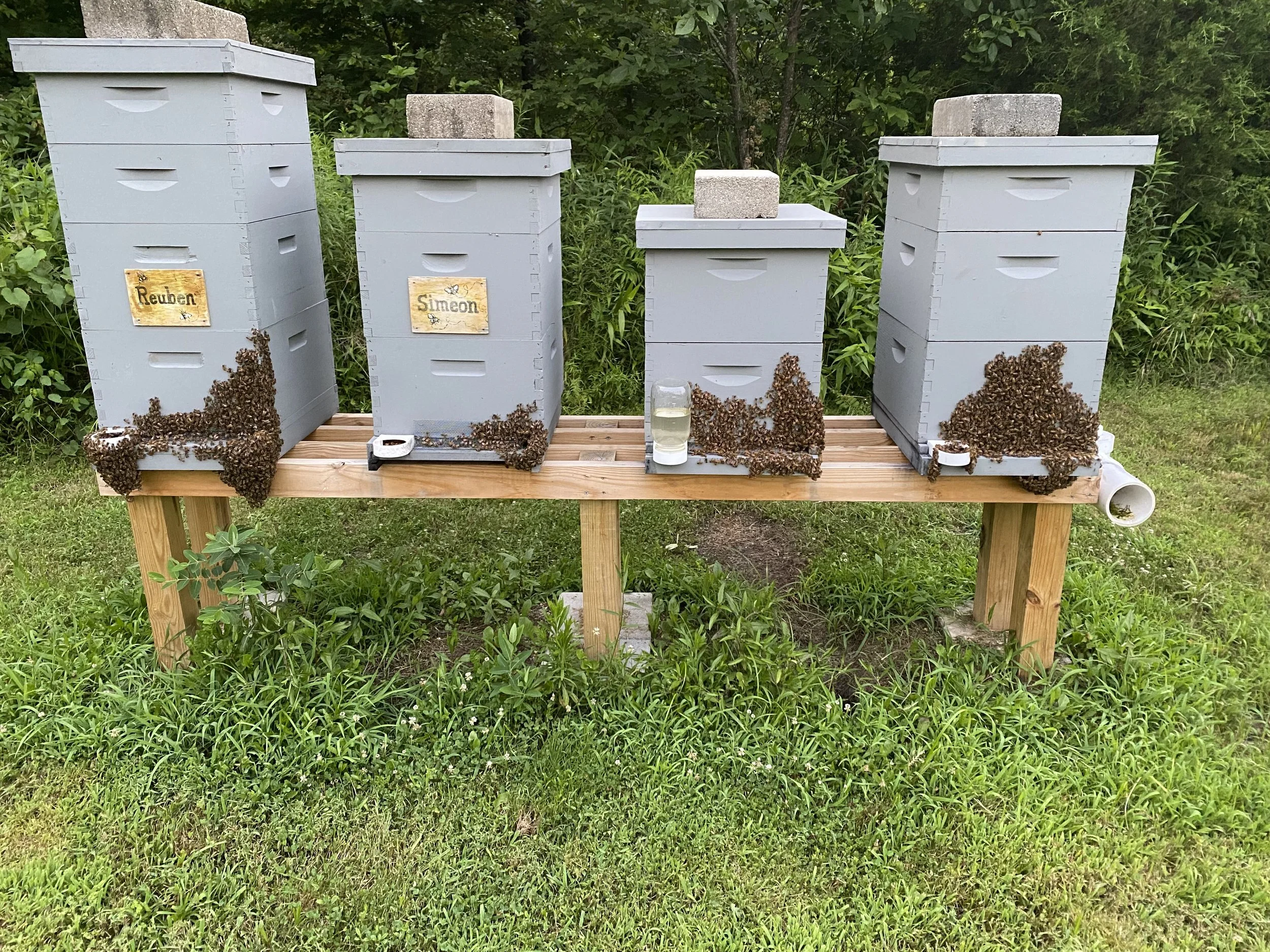 Re-hang your hive at least 18” off the ground and wait for the bees to occupy the honey super and begin producing honey! This will take weeks to months depending on the health of the hive.